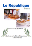 - 1er Patrick MERCHADOU : un repas pour deux personnes à hauteur de 150€ au restaurant « Le République »